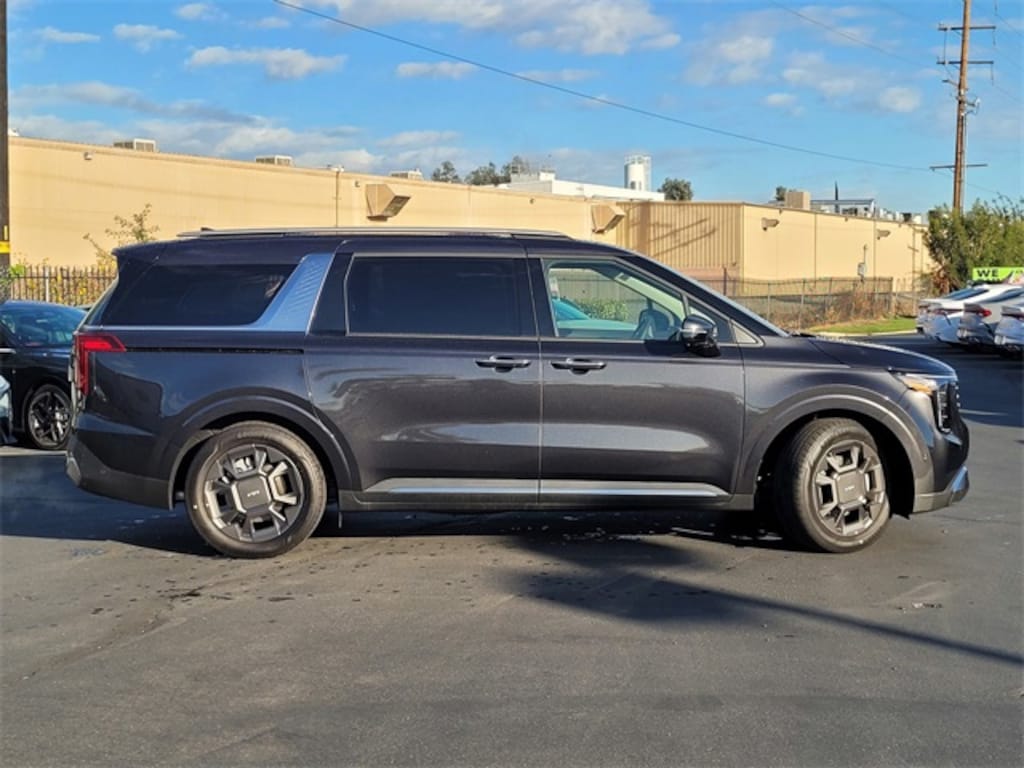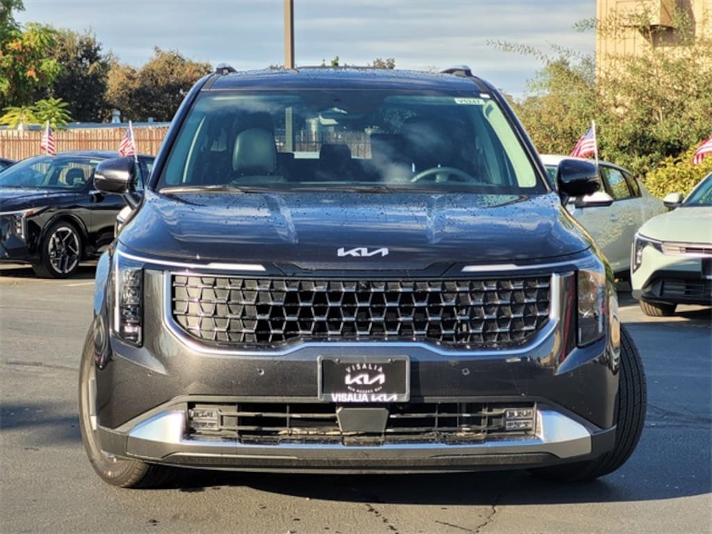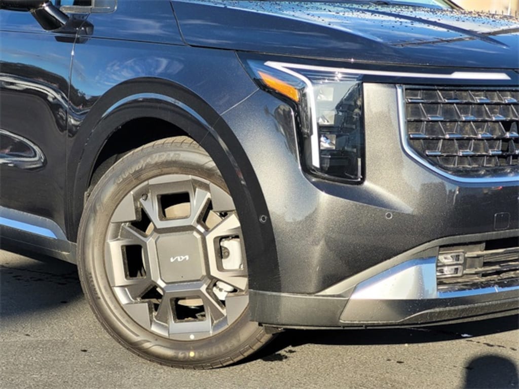 3.51 Axle Ratio, 3rd row seats: split-bench, 4-Wheel Disc Brakes, 8 Speakers, ABS brakes, Air Conditioning, Alloy wheels, AM/FM radio: SiriusXM, Apple CarPlay & Android Auto, Artificial Leather Seat Trim, Auto High-beam Headlights, Automatic temperature control, Brake assist, Bumpers: body-color, Carpeted Floor Mats (8-Passenger), Compass, Delay-off headlights, Driver door bin, Driver vanity mirror, Dual front impact airbags, Dual front side impact airbags, Electronic Stability Control, Emergency communication system, Exterior Parking Camera Rear, Four wheel independent suspension, Front anti-roll bar, Front Bucket Seats, Front Center Armrest, Front dual zone A/C, Front fog lights, Front reading lights, Fully automatic headlights, Heated & Ventilated Front Bucket Seats, Heated door mirrors, Heated front seats, Illuminated entry, Knee airbag, Leather Shift Knob, Leather steering wheel, Low tire pressure warning, Memory seat, Navigation System, Occupant sensing airbag, Outside temperature display, Overhead airbag, Overhead console, Panic alarm, Passenger door bin, Passenger vanity mirror, Power 2nd-Row Moonroof, Power door mirrors, Power driver seat, Power Liftgate, Power moonroof, Power passenger seat, Power steering, Power windows, Radio: AM/FM/HD Audio System, Rain sensing wipers, Rear air conditioning, Rear anti-roll bar, Rear reading lights, Rear window defroster, Rear window wiper, Reclining 3rd row seat, Remote keyless entry, Security system, Speed control, Speed-sensing steering, Split folding rear seat, Spoiler, Steering wheel mounted audio controls, Tachometer, Telescoping steering wheel, Tilt steering wheel, Traction control, Trip computer, Turn signal indicator mirrors, Variably intermittent wipers, Ventilated front seats, Wheels: 7.5J x 19" Alloy Dark Edition, and Wheels: 7.5J x 19" Black Alloy. 18/26 City/Highway MPG Price includes: $1000 - KFA Dealer Choice Program: $1000 discount and 5.50% APR for 36 months. $30.20 per $1000 financed. Available to well qualified buyers who finance through Kia Finance America. 506. Exp. 11/03/2025